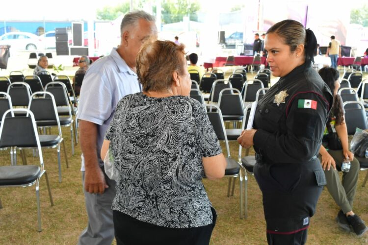 Camargo, Tamaulipas. – A través de las unidades de la Guardia Estatal de Género, Cibernética y el área de reclutamiento, la Secretaría de Seguridad Pública de Tamaulipas (SSPT) mantiene la proximidad con la ciudadanía asistente a la brigada ‘’Transformando Familias’’ celebrada en el municipio de Camargo.