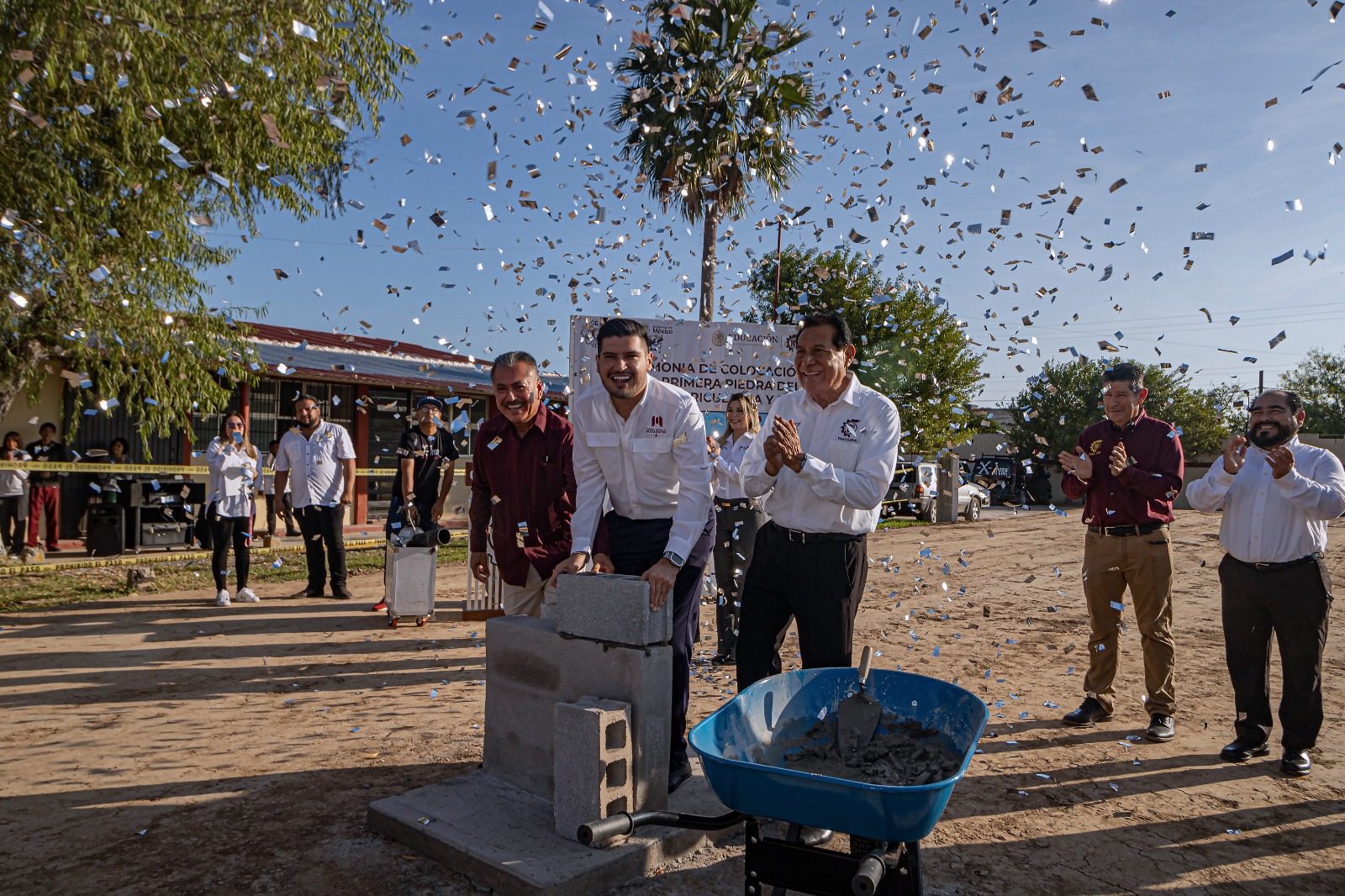 De forma visionaria y entusiasta el alcalde y autoridades educativas colocaron la primera piedra de lo que serán cinco aulas nuevas y el Taller de Puericultura que beneficiará a los más de 3 mil 200 alumnos que conforman este importante plantel en Matamoros y Tamaulipas que ha destacado a nivel nacional.