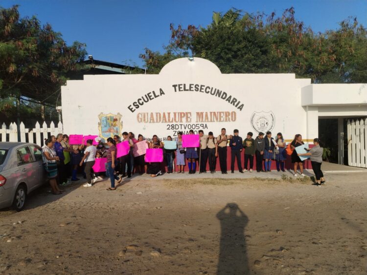 Matamoros, Tamaulipas.- Un grupo de padres de familia y estudiantes de la Telesecundaria «Guadalupe Mainero» del Poblado Las Higuerillas en Matamoros, se manifestaron de forma pacifica en apoyo al maestro Jesús Alberto Perales Reta, de quien a decir del director, profesor Cosme de Los Reyes Turrubiates y del supervisor, Arturo Díaz Mandujano, el maestro Perales Reta hizo tocamientos a un alumno y por eso debe estar concentrado en la supervisión escolar.