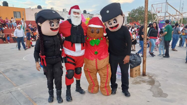 Matamoros, Tamaulipas.- En atención a una invitación ciudadana, personal de la Guardia Estatal en el municipio de Matamoros sostuvo una convivencia navideña con menores de la colonia Estancias Residenciales.