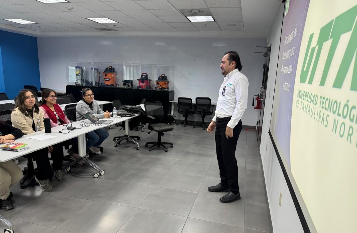 Reynosa, Tamaulipas.– La Universidad Tecnológica de Tamaulipas Norte (UTTN), a través del Departamento de Inclusión y Equidad Educativa, impartió la conferencia “Estrategias de Atención para Personas con Trastornos del Espectro Autista (TEA)” al personal de la empresa Emerson, informó su rector, Edgar Garza Hernández.