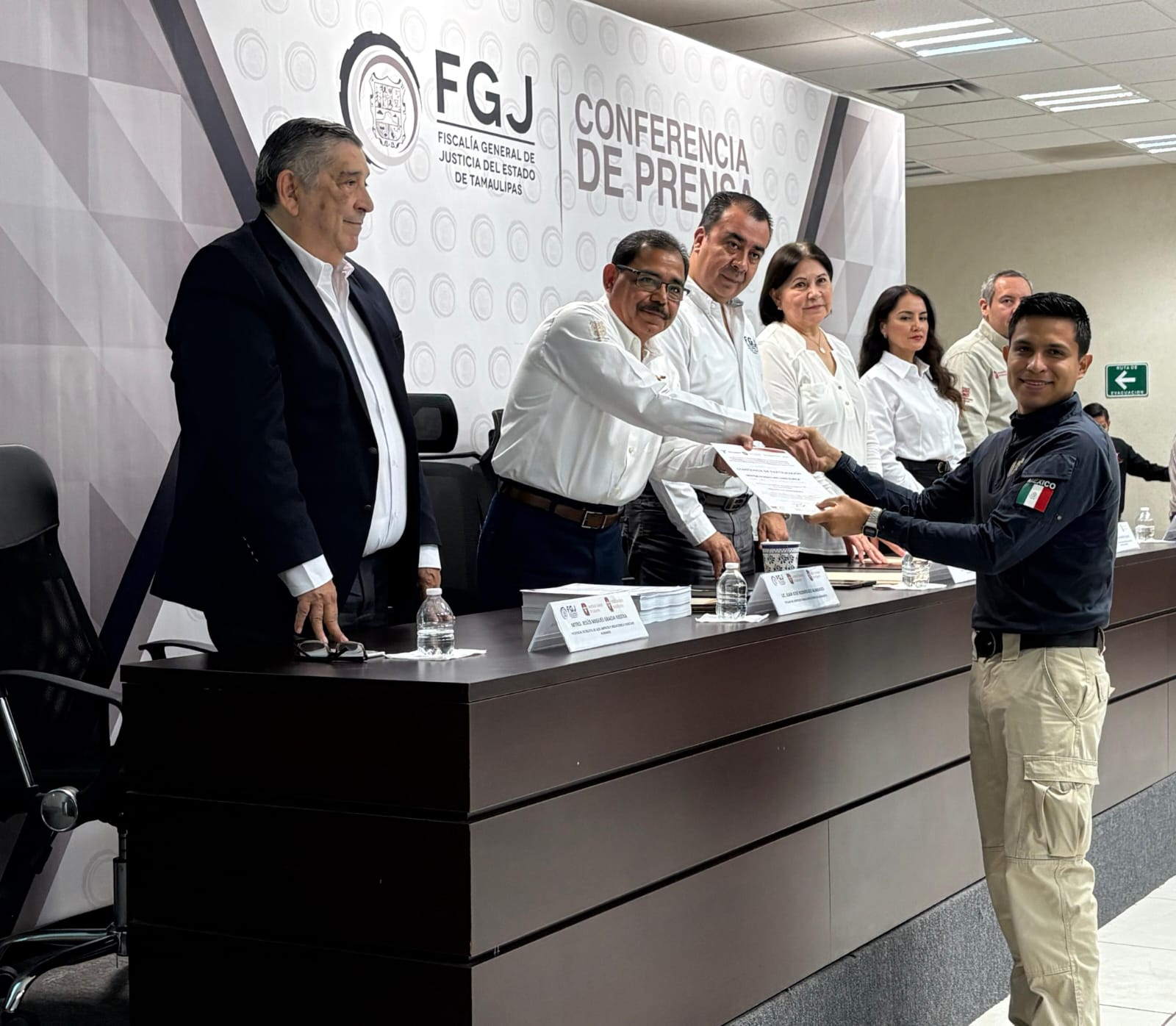 El evento se llevó a cabo en la Sala de Juicios Orales de la propia FGJ y contó con la presencia del director general del ITM, Juan José Rodríguez Alvarado; el vicefiscal de Alto Impacto y de Violaciones a Derechos Humanos, Jesús Miguel Gracia Riestra; la presidenta de la Comisión Estatal de Derechos Humanos de Tamaulipas, María Tadie Garza Guerra; el subsecretario de Derechos Humanos y Articulación Social de la SEBIEN, Esteban Etienne; la fiscal especializada en la Investigación de Derechos Humanos, Mariana Ramírez Solano, y el director general de Asuntos Jurídicos y de Derechos Humanos de la FGJ, Craig López Olguín.