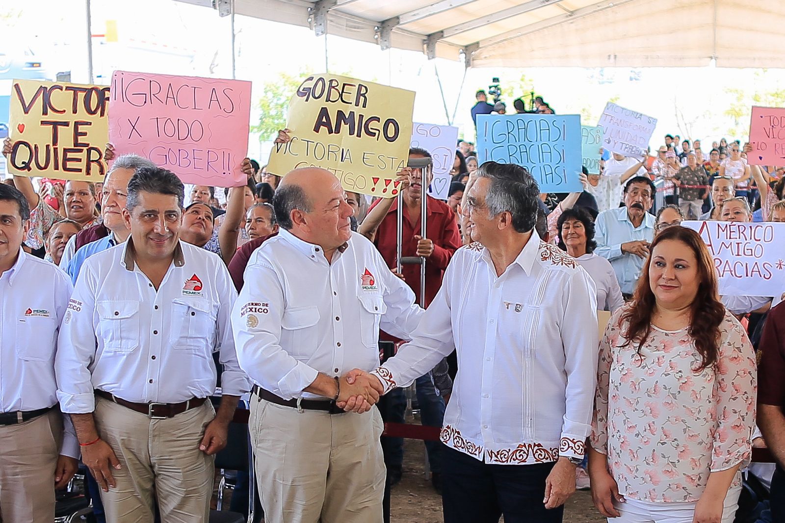 En el evento, César Raúl Ojeda Zubieta, gerente de Responsabilidad Social de PEMEX, entregó al gobernador una ambulancia de traslado equipada, un camión tipo grúa con canastilla y dos camiones recolectores y compactadores de basura; además, anunció que Petróleos Mexicanos donará cinco mil toneladas de asfalto para que sigan pavimentándose las calles de Tamaulipas.