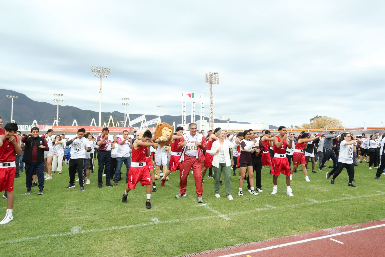 Acompañado por las y los integrantes de la selección tamaulipeca de boxeo, que recientemente brillaron en el Macro Regional de Tijuana, además de atletas, las y los secretarios e integrantes de su gabinete, y estudiantes, el mandatario tamaulipeco realizó todas las rutinas y se ejercitó al igual que las y los asistentes, siguiendo a las leyendas del boxeo que dieron cátedra desde el Zócalo de la Ciudad de México.