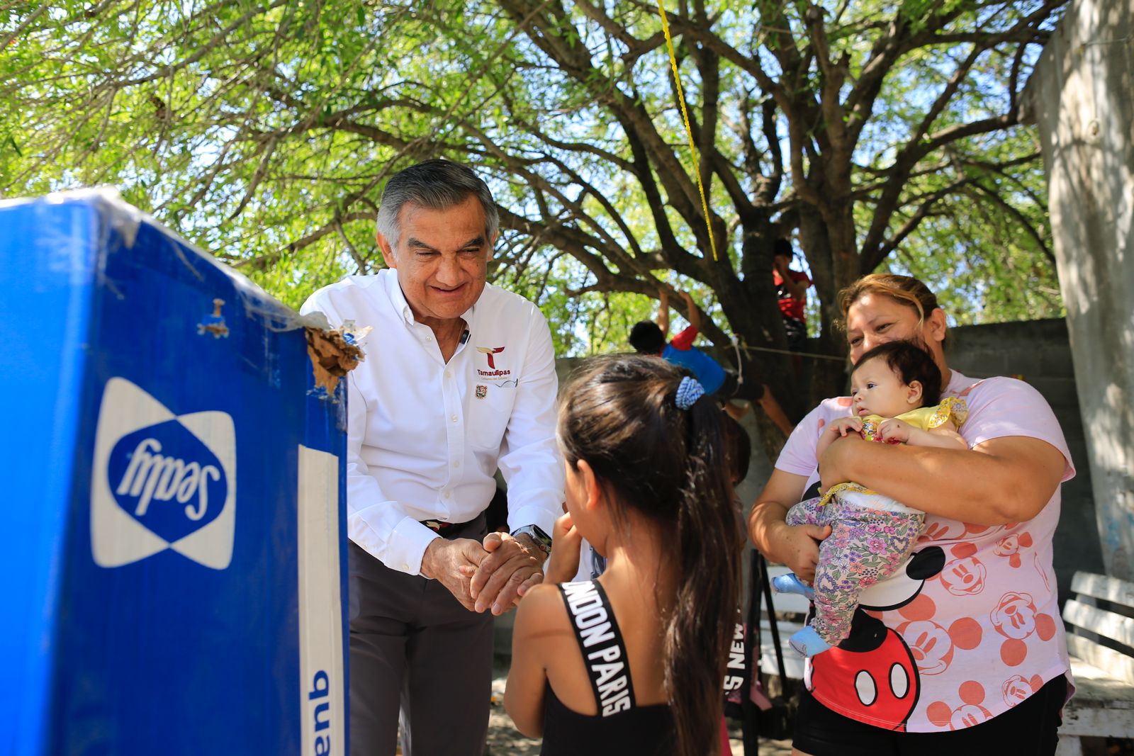 Reynosa, Tamaulipas. – El gobernador Américo Villarreal Anaya y la presidenta del DIF Estatal, doctora María de Villarreal, encabezaron este sábado una jornada más de entrega de apoyos a familias que fueron afectadas por las lluvias en la colonia Juan Escutia, de Reynosa.