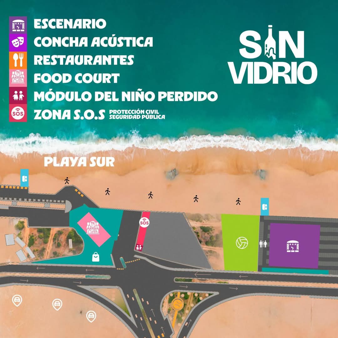 En playa norte habrá juegos mecánicos, estacionamiento, zona infantil, zona comercial, deportiva, acceso a la playa y zona peatonal; en playa sur estarán colocados los escenarios, concha acústica, restaurantes, módulo del niño perdido y área S.O.S. (protección civil y seguridad pública), además de ser área libre de vidrio.