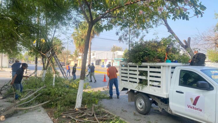 Cd. Victoria, 24 de abril 2025. – El Gobierno de Victoria mantiene los trabajos de limpieza y mantenimiento de vialidades y áreas verdes de la ciudad con intensa jornada trabajos de chapoleo, poda y recolección de maleza en el primer cuadro de la capital.