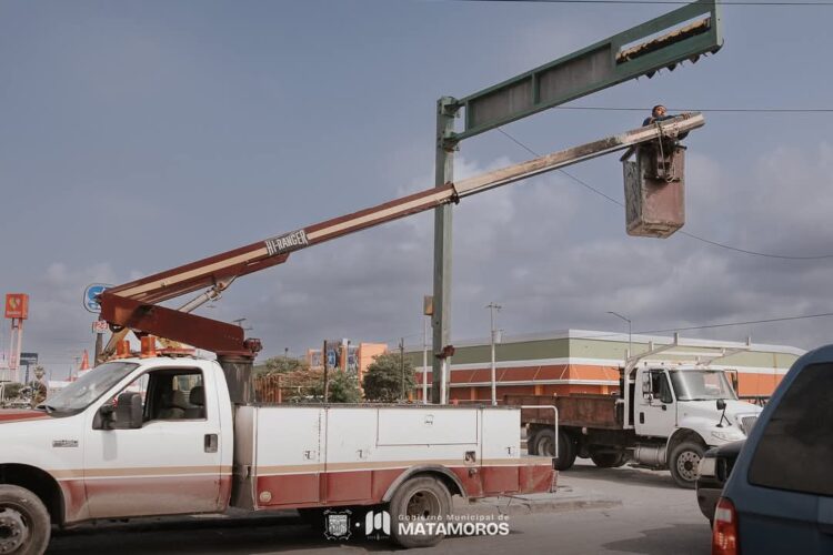 H. Matamoros, Tamaulipas.- Por un Matamoros seguro y en el marco del compromiso con el ordenamiento del tránsito y la mejora continua de la infraestructura vial, el gobierno municipal llevó a cabo la reparación integral de los semáforos ubicados en el cruce de la Avenida 12 de Marzo y Avenida Puerto Rico.