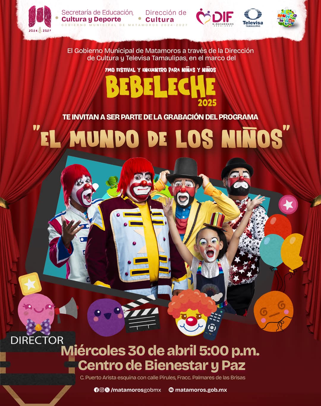 H. Matamoros, Tamaulipas. – En el marco del festival Bebeleche 2025, el Gobierno municipal hizo la invitación a todas las familias, especialmente a niñas y niños, a ser parte de la grabación del programa infantil «El Mundo de los Niños», una producción especial que busca enaltecer los valores de la imaginación, la creatividad, la alegría y la participación comunitaria desde la infancia.