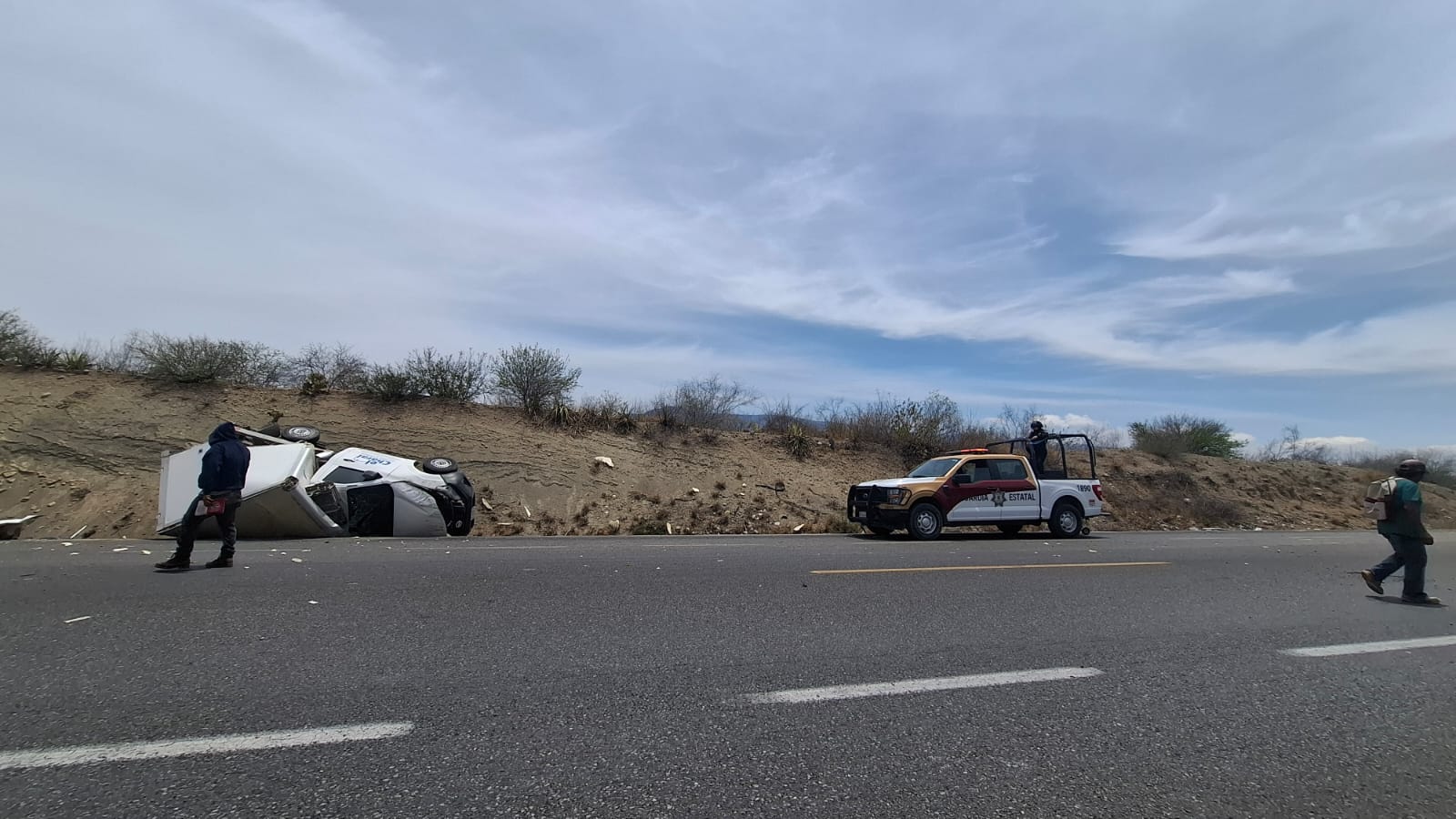 Jaumave, Tamaulipas.- Personal de la Guardia Estatal de Apoyo Carretero comisionado a la Estación Segura Jaumave acudió al kilómetro 130 de la Carretera Federal 101 en atención a una volcadura registrada cerca del ejido San Antonio, municipio de Jaumave.