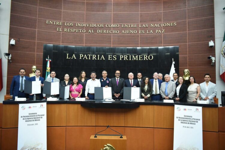 CDMX.-La comisión de Asuntos de la Frontera Norte del Senado de la República, realizó entrega de reconocimiento a Rafael Marín Mollinedo titular de la ANAM y a 24 titulares de las Aduanas de México por su trabajo para fortalecer el comercio, la seguridad fronteriza y el desarrollo económico.