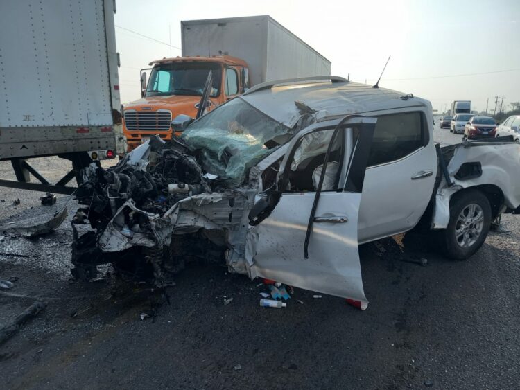 Hidalgo, Tamaulipas.- Derivado de un accidente vehicular en el que participaron tres tractocamiones y una camioneta, la circulación vial se encuentra cerrada sobre el kilómetro 49 del carril de norte a sur de la Carretera Federal 85.