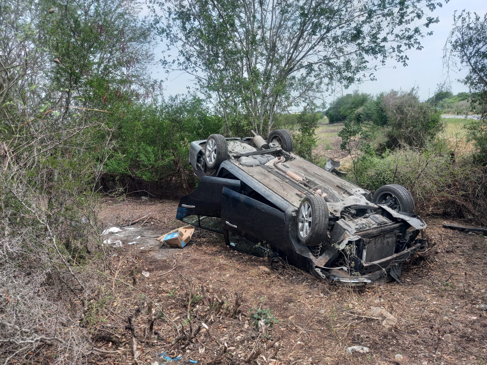El conductor refirió que viajaba desde Tampico con destino a Monterrey cuando perdió el control del automóvil, provocando la volcadura.