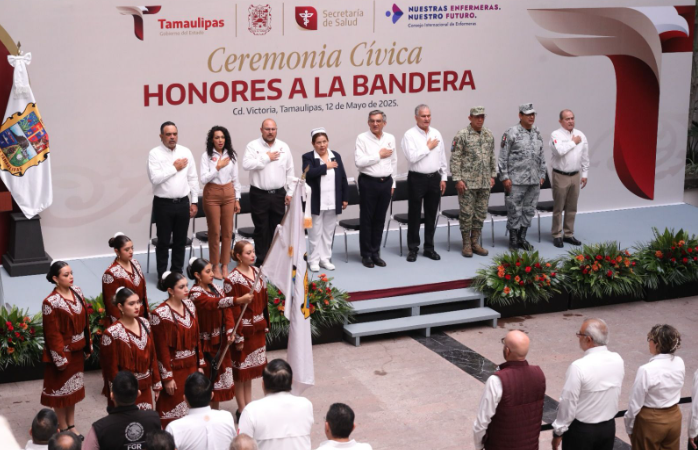 También acompañaron al gobernador en esta ceremonia cívica: Héctor Joel Villegas González, secretario general de Gobierno; diputada Cynthia Jaime Castillo, presidenta de la Mesa Directiva del Congreso; diputado Víctor Manuel García Fuentes, presidente de la Comisión de Salud; magistrado Hernán de la Garza Tamez, presidente del Supremo Tribunal de Justicia; general Enrique García Jaramillo, comandante de la 48 Zona Militar, y el general Francisco Alvarado Terán, coordinador de la Guardia Nacional en Tamaulipas, además de funcionarios del gabinete estatal y personal de enfermería de diferentes unidades médicas.