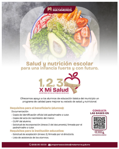 H. Matamoros, Tamaulipas.- El Gobierno de Matamoros, bajo la presidencia de Beto Granados, ha reafirmado su compromiso con el bienestar de las niñas y niños de la comunidad. En este sentido, el programa 1,2,3 x Mi Salud se presenta como una iniciativa clave para mejorar la salud y nutrición de los estudiantes de educación básica en la región.