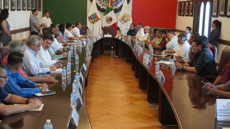 El Secretario del Ayuntamiento Hugo Reséndez Silva coordinó la reunión de trabajo celebrada en la sala de Cabildo en la que participaron titulares de la CFE, ITAVU, CMIC, CANADEVI, COMAPA, áreas municipales e integrantes del Cabildo.