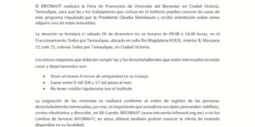 INFONAVIT realizará feria de promoción de viviendas del bienestar en ciudad Victoria