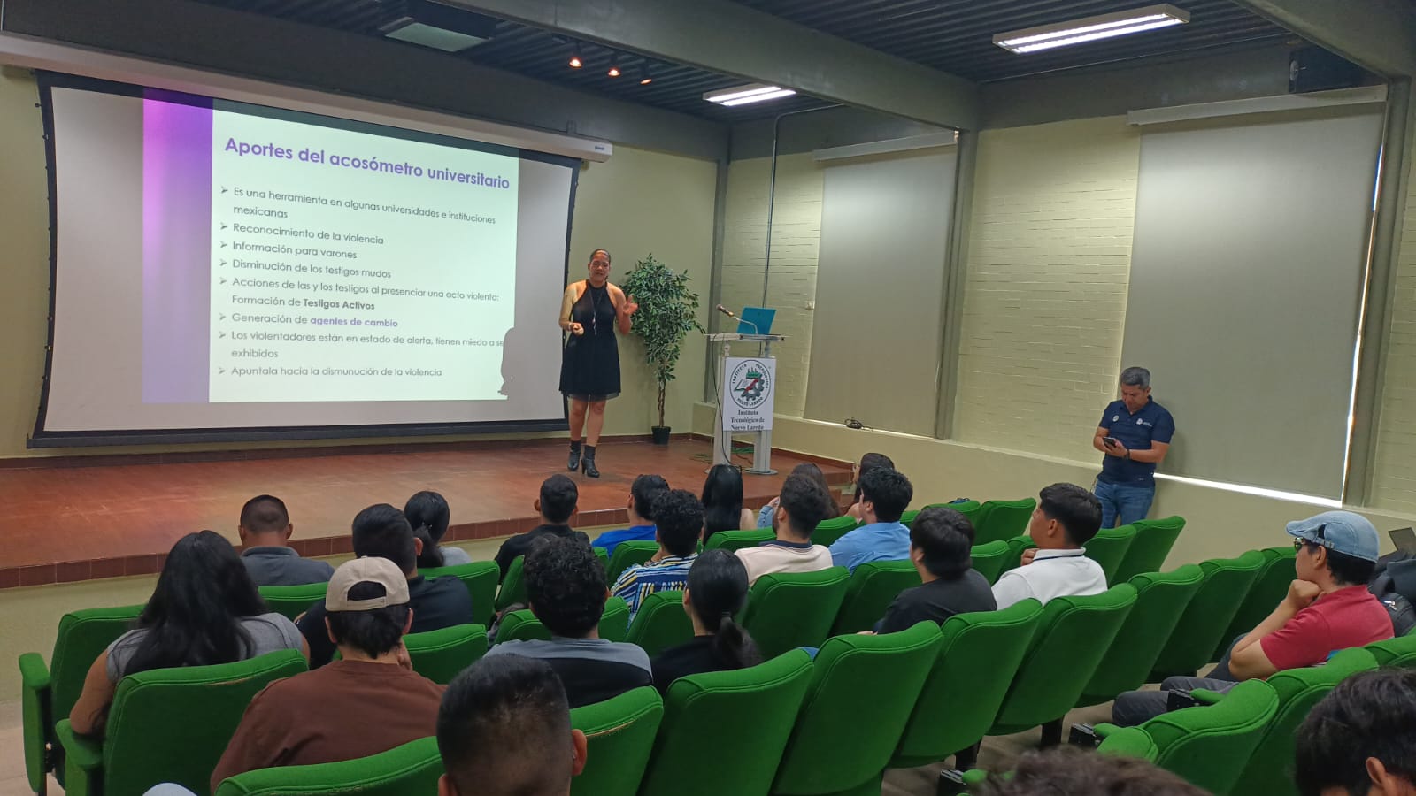 Estas actividades iniciaron con la Conferencia “Acosómetro Universitario: una herramienta para reconocer y actuar ante la violencia sexual en el ámbito educativo y social”, la cual se llevó a cabo en la Sala Audiovisual del Instituto Tecnológico de Nuevo Laredo.