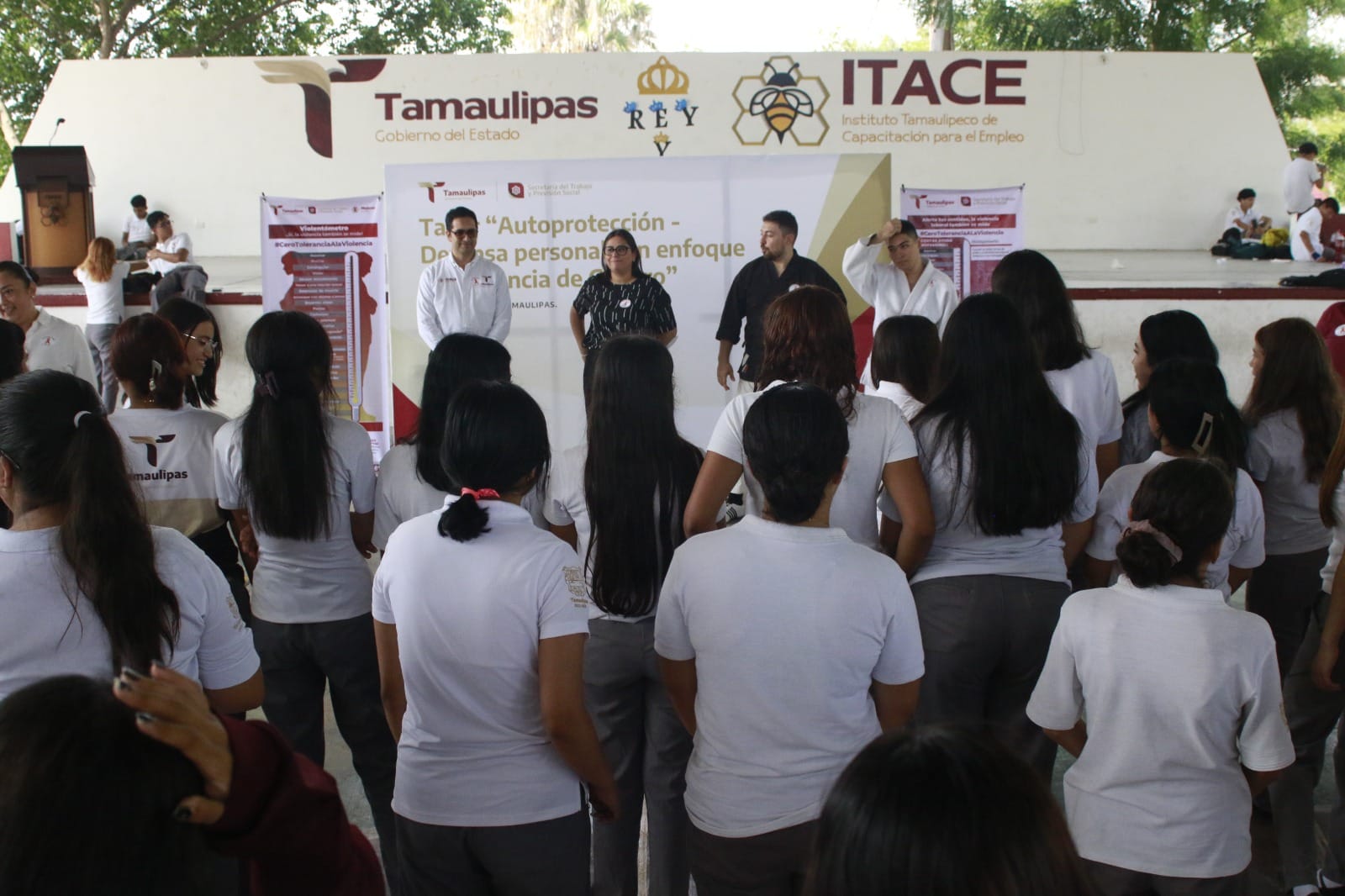 Ciudad Victoria, Tamaulipas.- Con el compromiso de promover espacios seguros y fortalecer la prevención de la violencia contra mujeres y niñas, la Secretaría del Trabajo y Previsión Social de Tamaulipas, a través de la Dirección de Género e Inclusión Laboral, la cual dirige, Lorena Enríquez Huerta, llevó a cabo el Taller de autoprotección y defensa personal con enfoque en violencia de género, dirigido a personal femenino, alumnas y madres de familia del Instituto Tamaulipeco de Capacitación para el Empleo (ITACE).