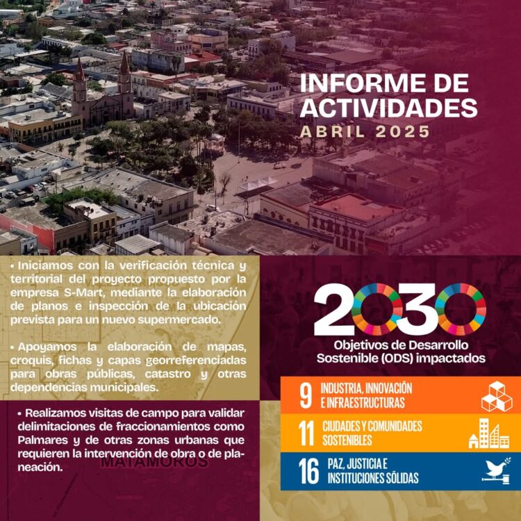 H. Matamoros, Tamaulipas.- Durante el mes de abril, el Instituto Municipal de Planeación (IMPLAN) desempeñó un papel fundamental en el acompañamiento técnico y territorial a distintos proyectos estratégicos para el desarrollo urbano del municipio. Su labor se centró en brindar soporte especializado en temas de infraestructura, ordenamiento urbano y regularización de asentamientos humanos, con el objetivo de garantizar un crecimiento ordenado, equitativo y sostenible de la ciudad.