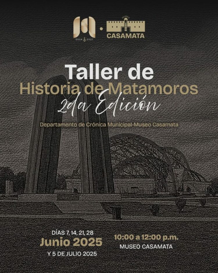 H. Matamoros, Tamaulipas.- Con el objetivo de fortalecer el conocimiento sobre nuestra identidad local y rescatar la memoria histórica de nuestra comunidad, el Gobierno Municipal de Matamoros, a través del departamento de crónica municipal y el museo Casamata, invita a la ciudadanía a participar en la segunda edición del Taller de Historia de Matamoros.