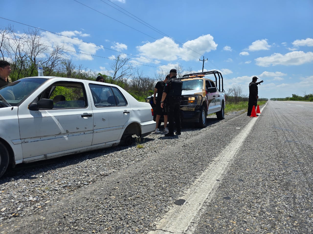 Padilla, Tamaulipas.- En atención a un reporte de C4 personal de la Guardia Estatal de Apoyo Carretero comisionado a la Estación Segura Vicente Norte acudió al kilómetro 67 de la Carretera Federal 101 Victoria-Matamoros.