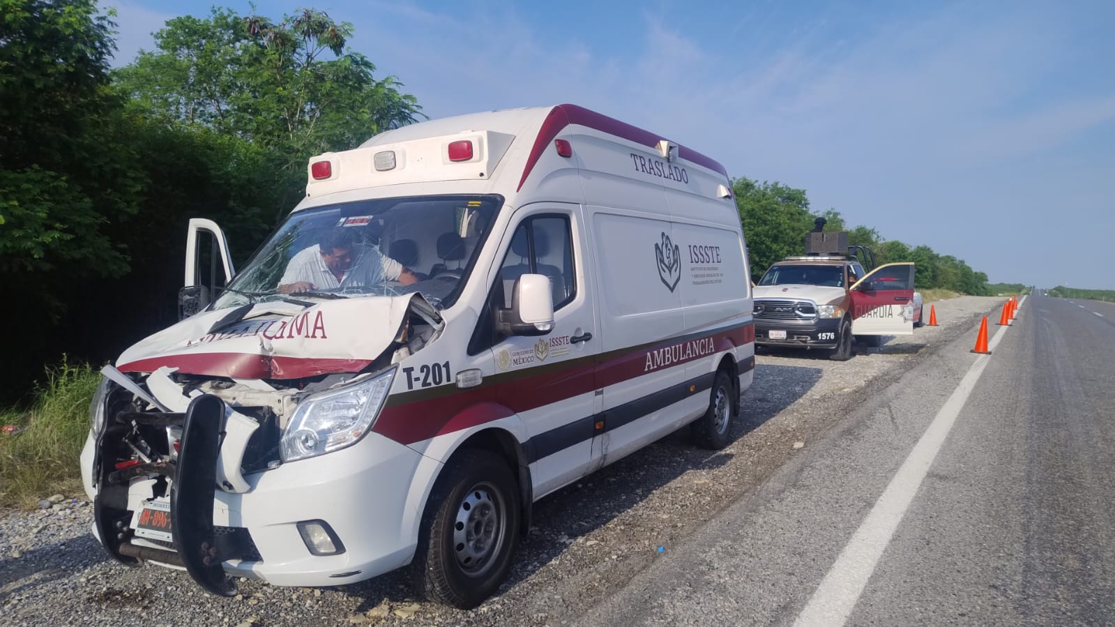 Padilla, Tamaulipas.- Al transitar sobre la Carretera Federal 101 Victoria-Matamoros personal de la Guardia Estatal visualizó a la altura del kilómetro 76 una ambulancia con la parte frontal impactada.