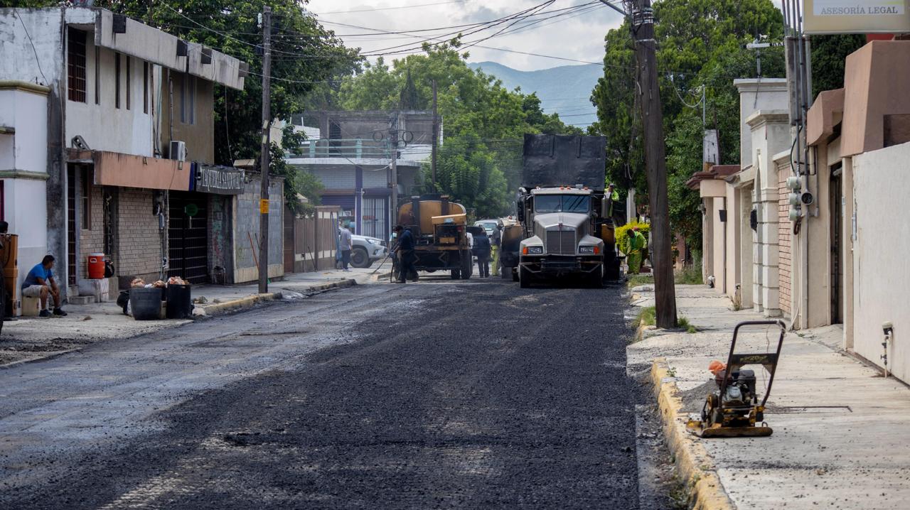 Para mejorar la ruta de transporte público que presta el servicio en las calles del 12 y 13 Carrera Torres y Abasolo, retiró y sustituyó la carpeta asfáltica para mejorar el rodamiento vehicular y seguridad de peatones que transitan por el sector.