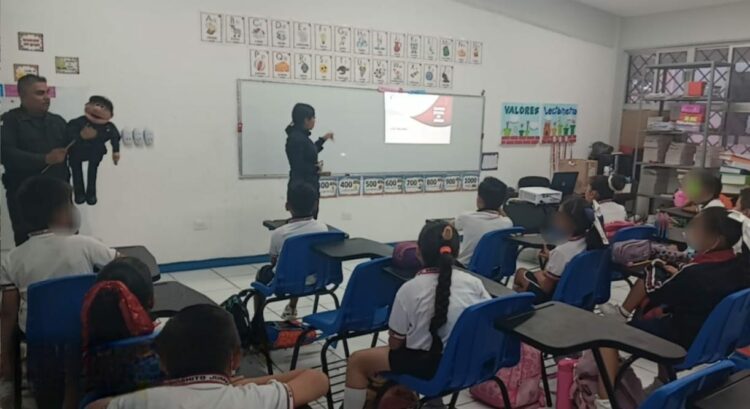 Tampico, Tamaulipas.- Dentro de las actividades desempeñadas en la Jornada Cultural de Prevención y Auxilio, personal de la Guardia Estatal de Género impartió unas pláticas preventivas en la Escuela Primaria ‘’Benito Juárez’’ ubicada en el municipio de Tampico.