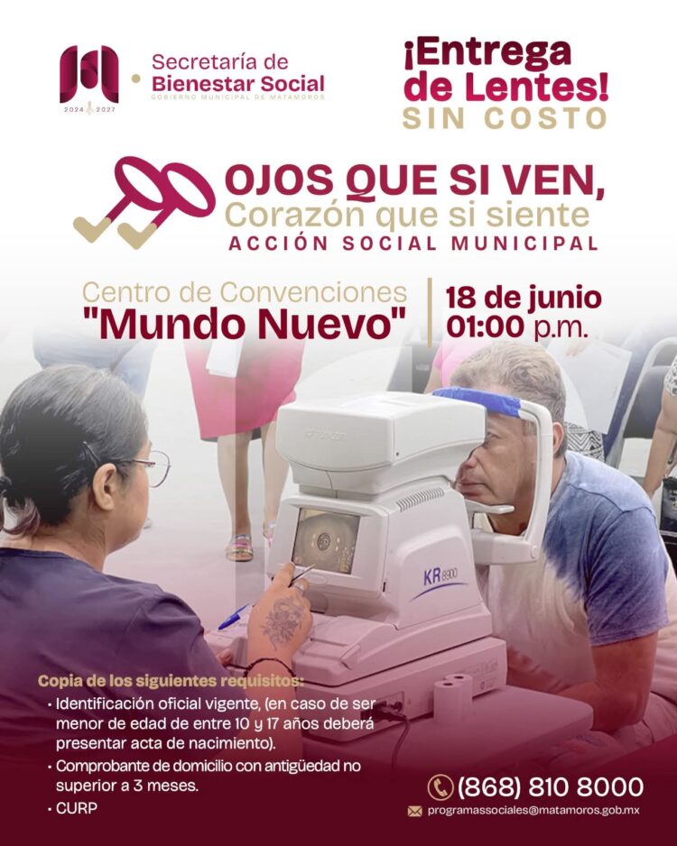 H. Matamoros, Tamaulipas.- El Gobierno Municipal de Matamoros, a través de la Dirección de Acción Social, continúa reforzando su compromiso con la salud visual de los matamorenses mediante el exitoso programa “Ojos que sí ven, corazón que sí siente”.