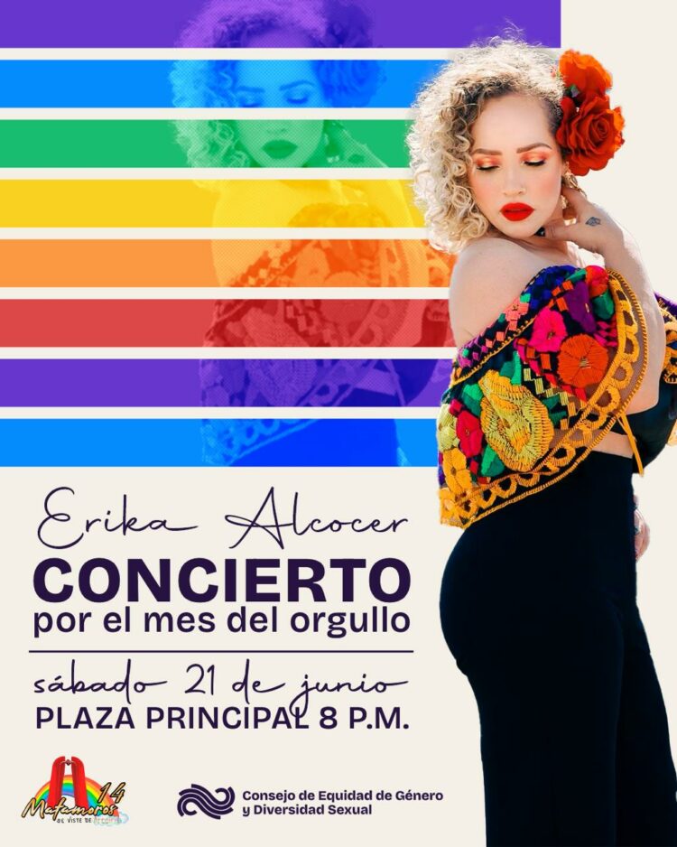 H. Matamoros, Tamaulipas.- En el marco de las celebraciones por el Mes del Orgullo LGBT+, el Consejo de equidad de género y diversidad sexual se enorgullece en presentar a Erika Alcocer, ganadora de La Academia, en un concierto especial lleno de música, inclusión y diversidad.