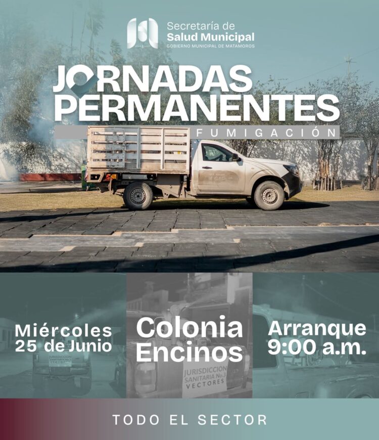 Simultáneamente, en la Colonia Encinos, se aplicará la jornada permanente de fumigación, con el objetivo de prevenir enfermedades transmitidas por el mosquito, como el dengue, zika y chikungunya. La hora de inicio será a las 9:00 de la mañana.
