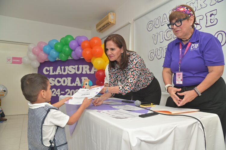 La Presidenta del Sistema DIF Tampico, Dra. Luz Adriana Villarreal Anaya, refrendó su compromiso con el cuidado y la formación inicial de la niñez, al encabezar la ceremonia de fin de Cursos de la Guardería Infantil Vicente Guerrero.