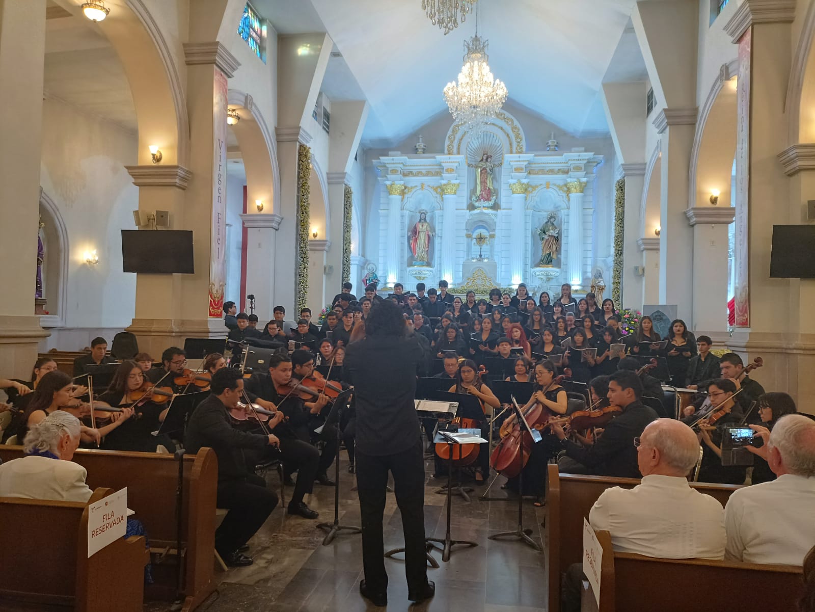 Previo a la presentación de la Camerata del Colegio de San Juan Siglo XXI, solistas y coro de bachillerato, su director, maestro Mauro Rojas Cárdenas, agradeció la presencia de todos y también informó sobre la programación que se tiene para éste 25 aniversario.