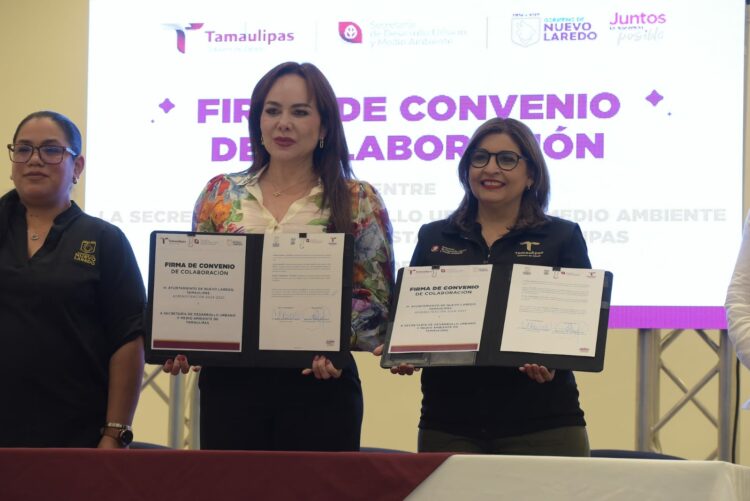 Nuevo Laredo, Tamaulipas.- En cumplimiento de la agenda ambiental del Gobierno de Tamaulipas y con el objetivo de fortalecer la colaboración interinstitucional en materia de crecimiento sostenible, la Secretaría de Desarrollo Urbano y Medio Ambiente (SEDUMA) y el Gobierno Municipal de Nuevo Laredo firmaron un convenio de colaboración que permitirá coordinar acciones conjuntas enfocadas en la reforestación urbana, la donación de árboles y la integración del sector empresarial comprometido con el cuidado del entorno.