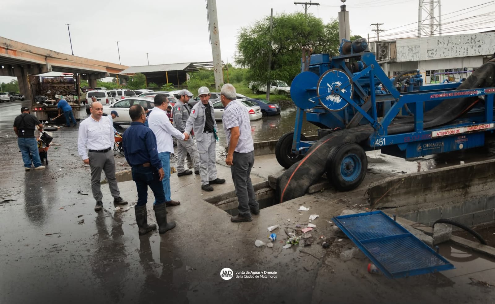 H. Matamoros, Tamaulipas.- En respuesta a las recientes lluvias, el Gobierno Municipal de Matamoros, en conjunto con la Junta de Aguas y Drenaje, mantiene activo de forma permanente el Comité de Contingencias. Desde temprana hora, el gerente general del organismo, ingeniero Marco Antonio Hernández Acosta, supervisó personalmente las zonas más afectadas, confirmando el funcionamiento óptimo de los 12 equipos de bombeo instalados en puntos estratégicos de la ciudad.