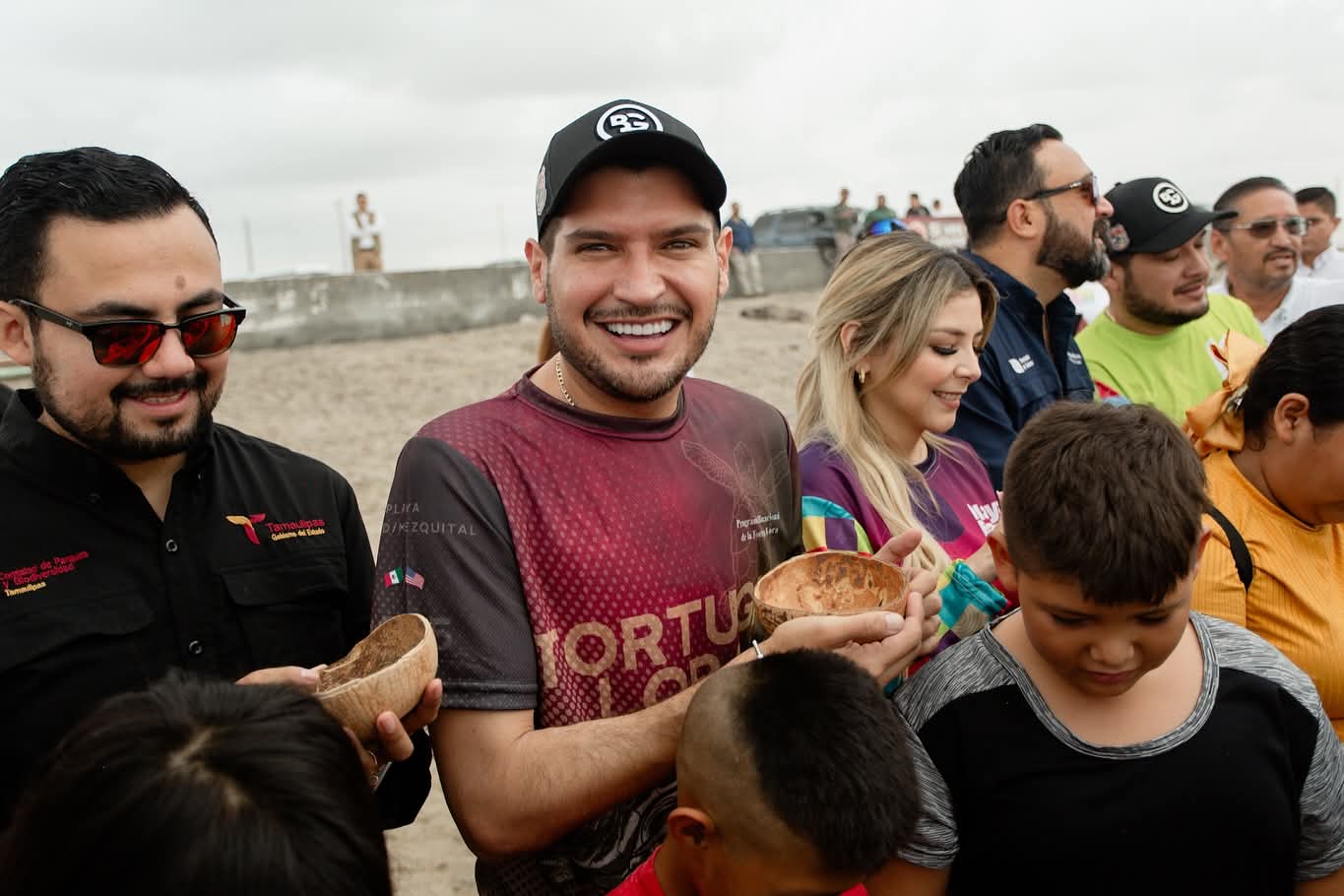 H. Matamoros, Tamaulipas.- El presidente municipal , Beto Granados encabezó en la playa Bagdad, la liberación de crías de tortuga lora (Lepidochelys kempii), una especie en peligro de extinción y símbolo de nuestras costas, reafirmando así el compromiso con la conservación de la biodiversidad y la protección del medio ambiente.
