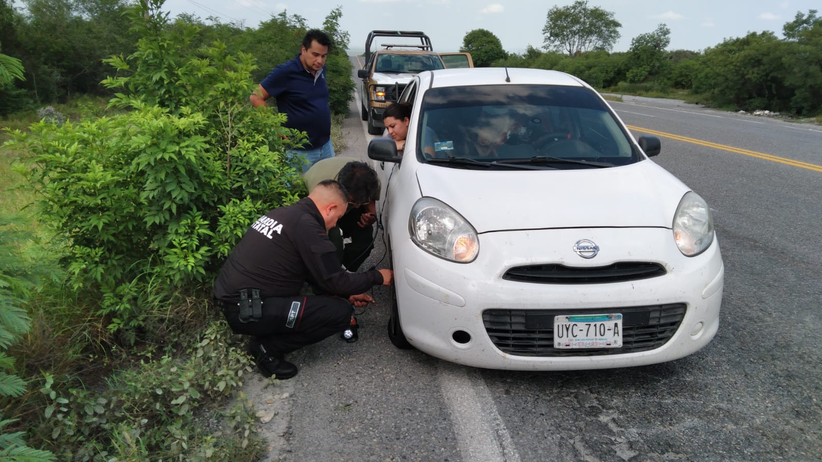 Jiménez, Tamaulipas.- Personal de la Guardia Estatal de Apoyo Carretero acudió al kilómetro 77 de la Carretera Federal 101 Victoria-Matamoros para brindar asistencia a un conductor varado tras una falla mecánica.