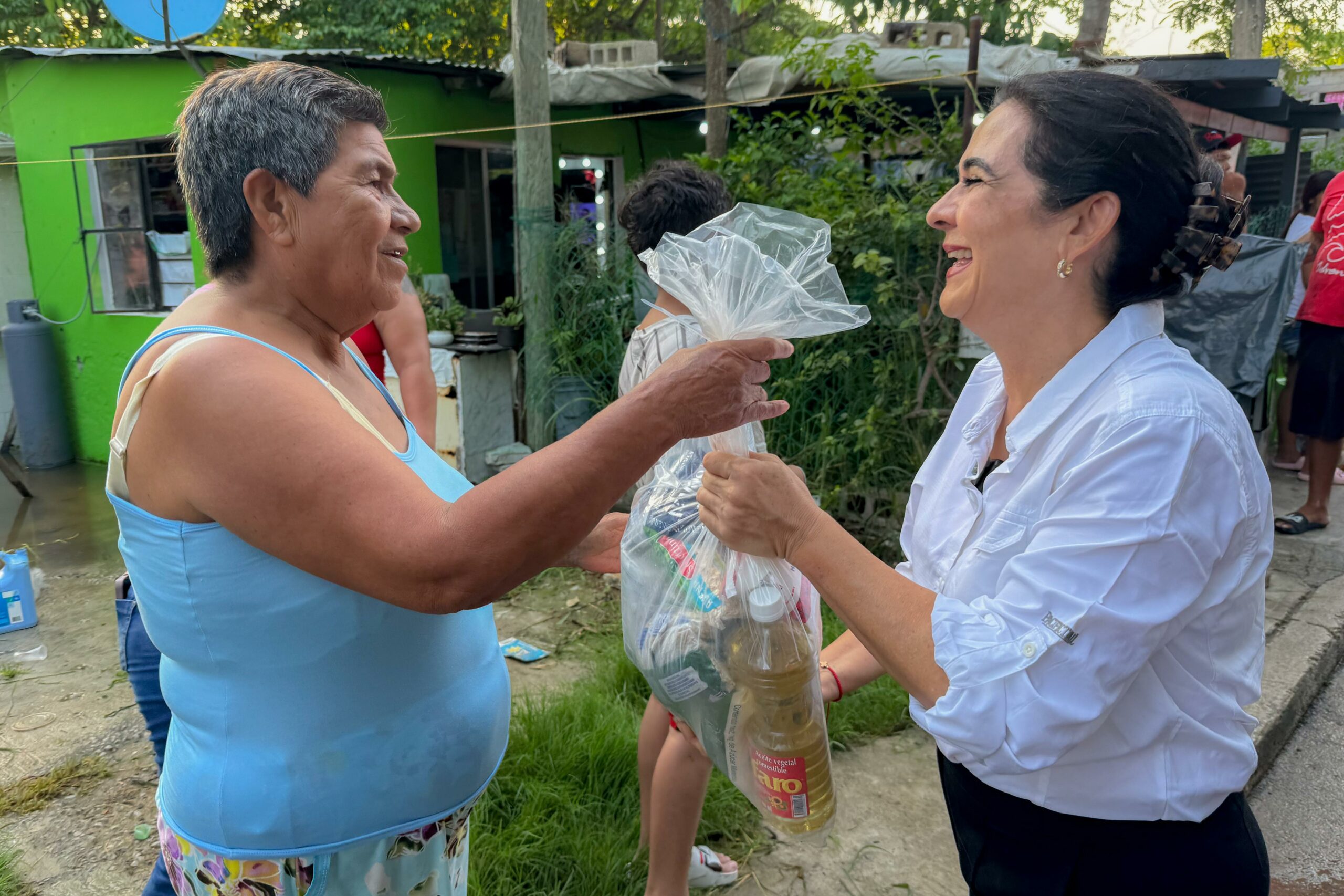 La alcaldesa informó que el lunes se atendieron otras colonias como Pescadores y Sembradores de la Amistad, además de avanzar en la colonia Sauce, donde, con apoyo de Tránsito y Vialidad, se entregaron cerca de 380 despensas.