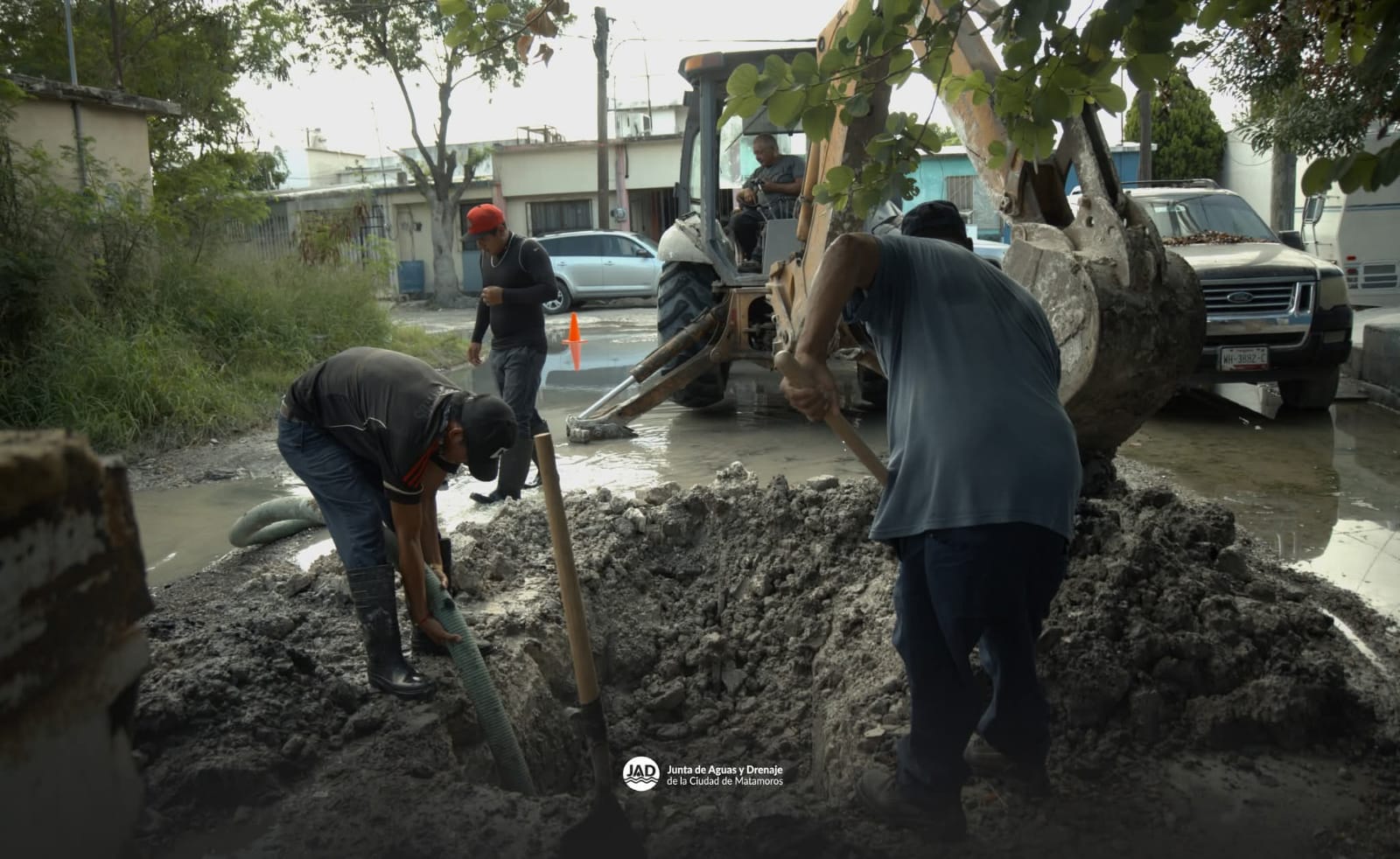 Matamoros, Tamaulipas-. Como parte de las acciones para proteger y preservar el recurso más valioso, el Gobierno de Matamoros que preside Beto Granados, a través de la Junta de Aguas y Drenaje (JAD), realizó la reparación de una fuga de agua potable en la calle Privada Halcones del fraccionamiento Las Águilas.