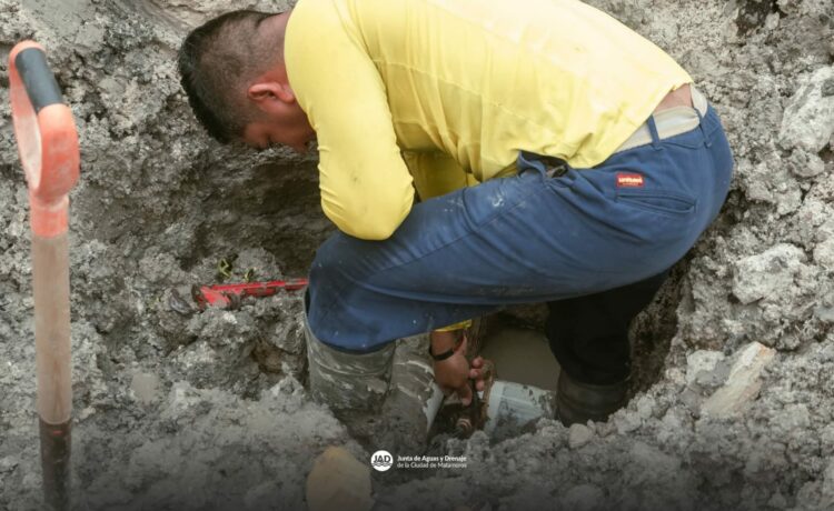 Los trabajos se llevaron a cabo en la calle Reyna Sofía, donde se detectó una fuga de agua. Para solucionarla, las cuadrillas de la JAD instalaron una abrazadera especializada, además de realizar la colocación de una nueva toma, lo que permitirá mejorar el suministro en esta zona habitacional.
