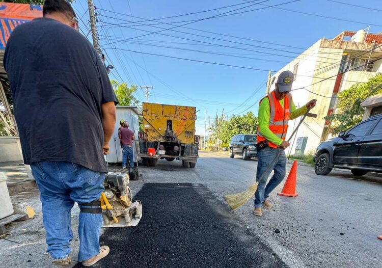 “La instrucción del alcalde Eduardo Gattás Báez es que los trabajos de bacheo no se detengan en período vacacional para avanzar en reducir el daño que dejaron las lluvias” informó el titular de esta área municipal Eusebio Alfaro Reyna.