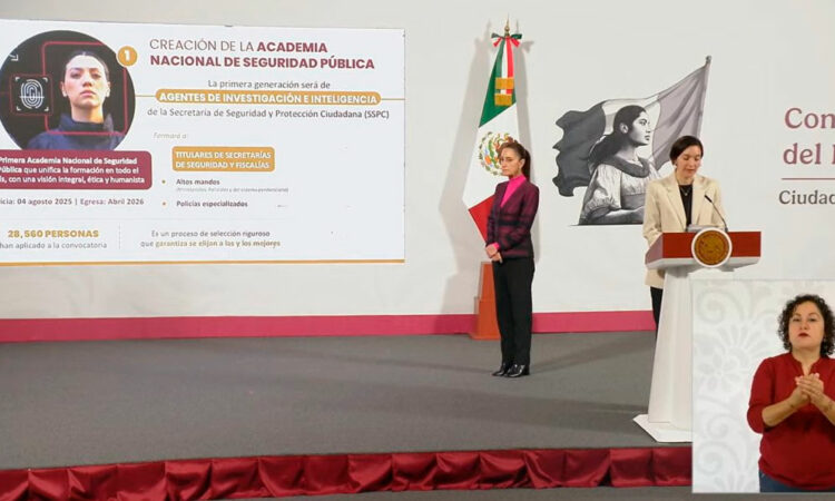 «La primera generación en esta Academia estará integrada por agentes de investigación e inteligencia de la Secretaría de Seguridad y Protección Ciudadana con un primer grupo conformado por 250 aspirantes que inicia su formación de nueve meses este próximo 4 de agosto«, informó la funcionaria.