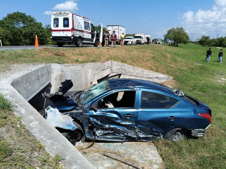González, Tamaulipas.- Personal de la Guardia Estatal de Apoyo Carretero atendió un accidente vial registrado en el kilómetro 09 de la Carretera Federal 80, a la altura del libramiento Manuel-González.