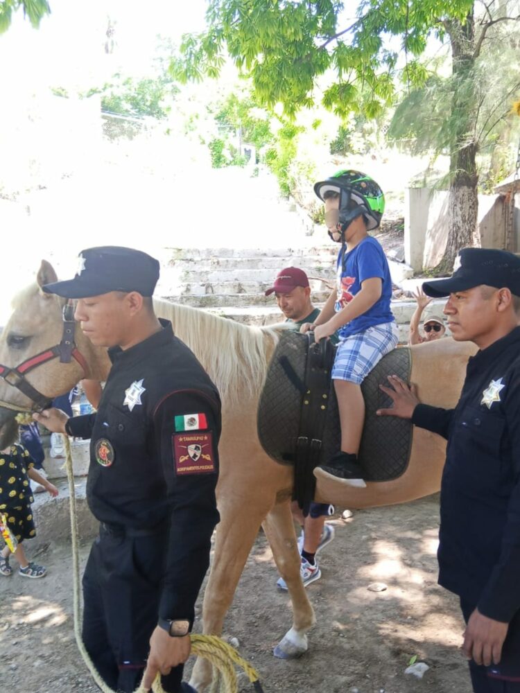 Ciudad Victoria, Tamaulipas.- Acorde con la política humanista del gobernador, Américo Villarreal Anaya, la Secretaría de Seguridad Pública de Tamaulipas (SSPT) recibió a personas con diversidad funcional, integrantes de la Asociación Civil Falcone para llevar a cabo sesiones de equinoterapia en las instalaciones del Agrupamiento Montado de la Guardia Estatal.