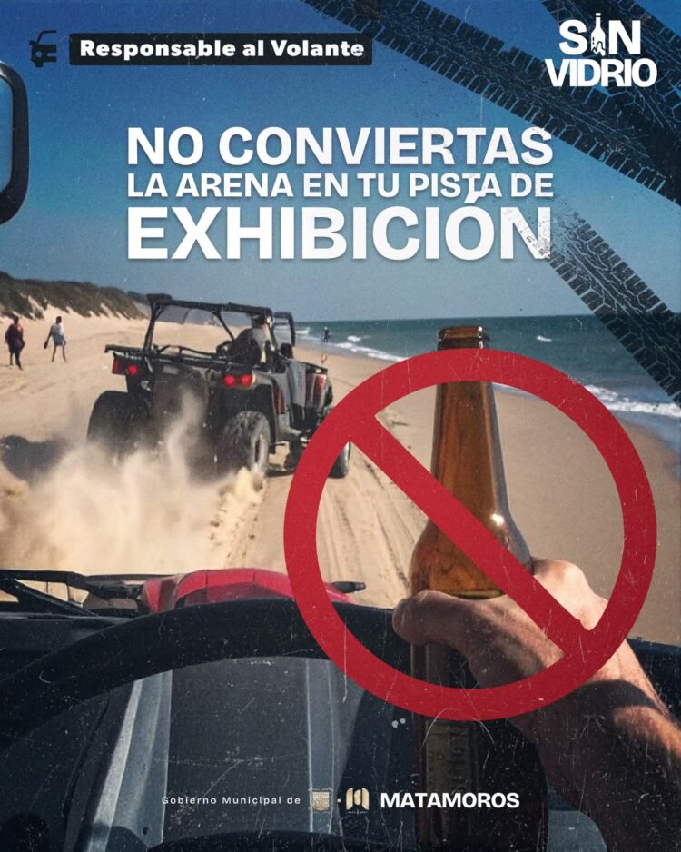 H. Matamoros, Tamaulipas.- Conducir una cuatrimoto u otro vehículo bajo los efectos del alcohol no es una hazaña… es un riesgo. Pones en peligro tu vida y también la de quienes te rodean, por lo cual, el Gobierno de Beto Granados exhortó a pasar un verano seguro.