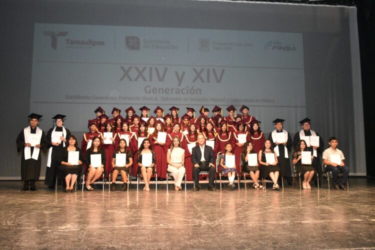 Matamoros, Tamaulipas.– El Colegio de San Juan Siglo XXI llevó a cabo la ceremonia de graduación correspondiente a la XXIV Generación del Bachillerato General con Formación Musical y Diplomado en Iniciación Musical, así como la XIV Generación de la Licenciatura en Música.