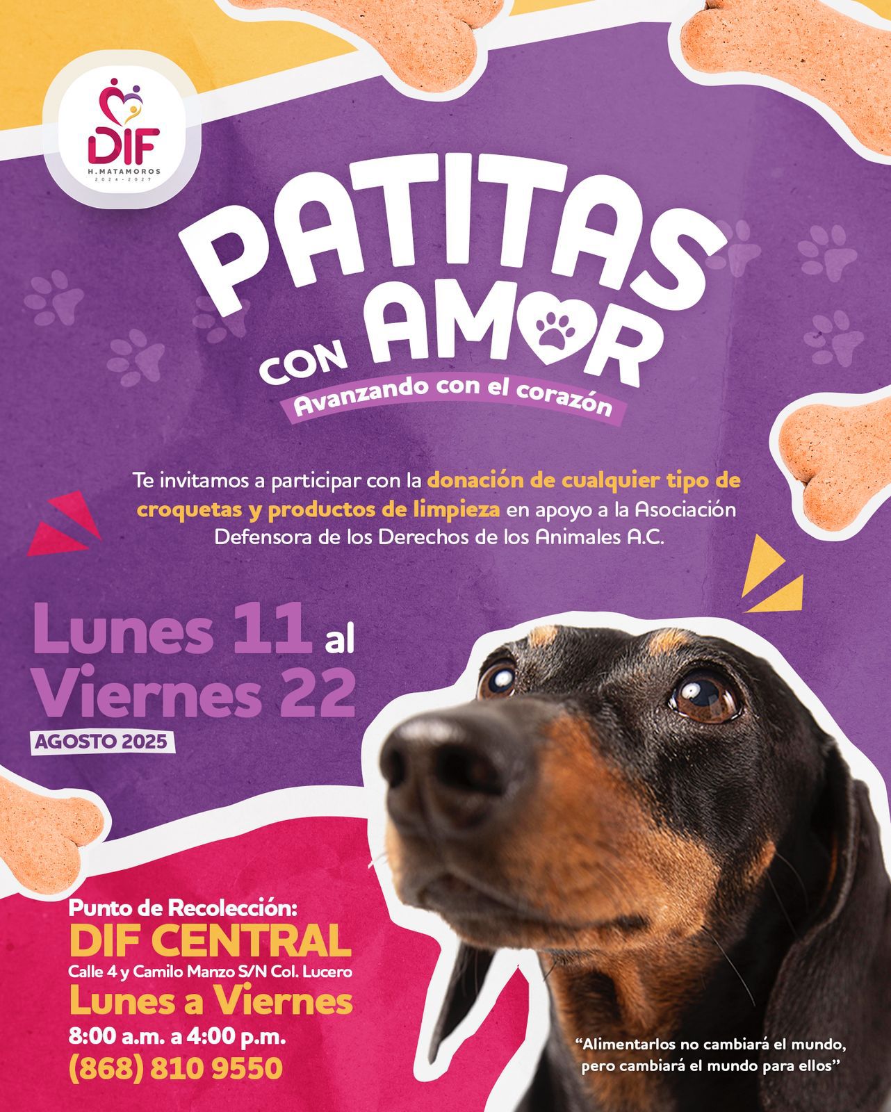 Trabajando también por el cuidado y seguridad de los animales, el Sistema DIF Matamoros que preside Anita de Granados, pone en marcha la campaña “Patitas de Amor” para respaldar las acciones solidarias que desempeña la Asociacion Defensora de los Derechos de los Animales A.C.
