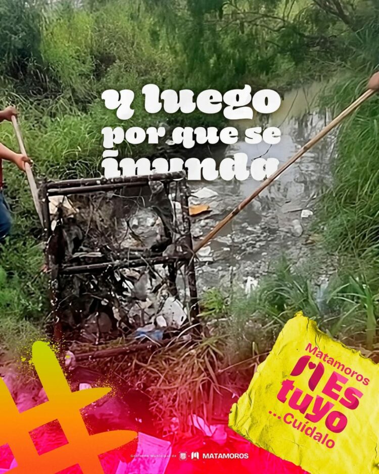 Matamoros, Tamaulipas. – Con el objetivo de prevenir inundaciones y proteger a la ciudadanía, el gobierno municipal que encabeza Beto Granados ha iniciado una campaña de concientización para evitar tirar basura en los canales pluviales de la ciudad. Bajo el lema “Tirar basura en los canales no es inofensivo”, se busca generar conciencia sobre los riesgos que esta acción representa para toda la población.