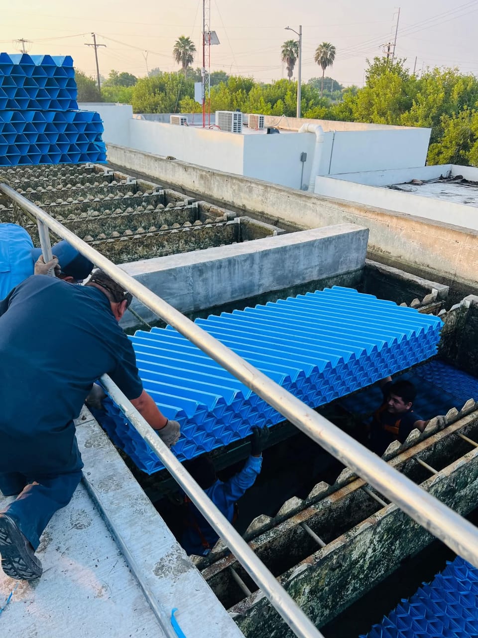 Como parte de estas labores se llevó a cabo la instalación de sedimentadores de alta tasa (lamelas) en el módulo sur de la planta; el reemplazo de una válvula de 24 pulgadas en el filtro 5 de la Planta Antigua; la instalación y sustitución de una válvula rasante tipo compuerta de 6 pulgadas en la descarga de sólidos del módulo sur de la Planta Ampliación; así como la reparación del agitador de floculador de la Planta Antigua.
